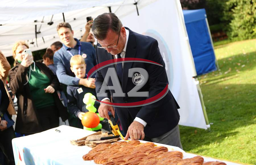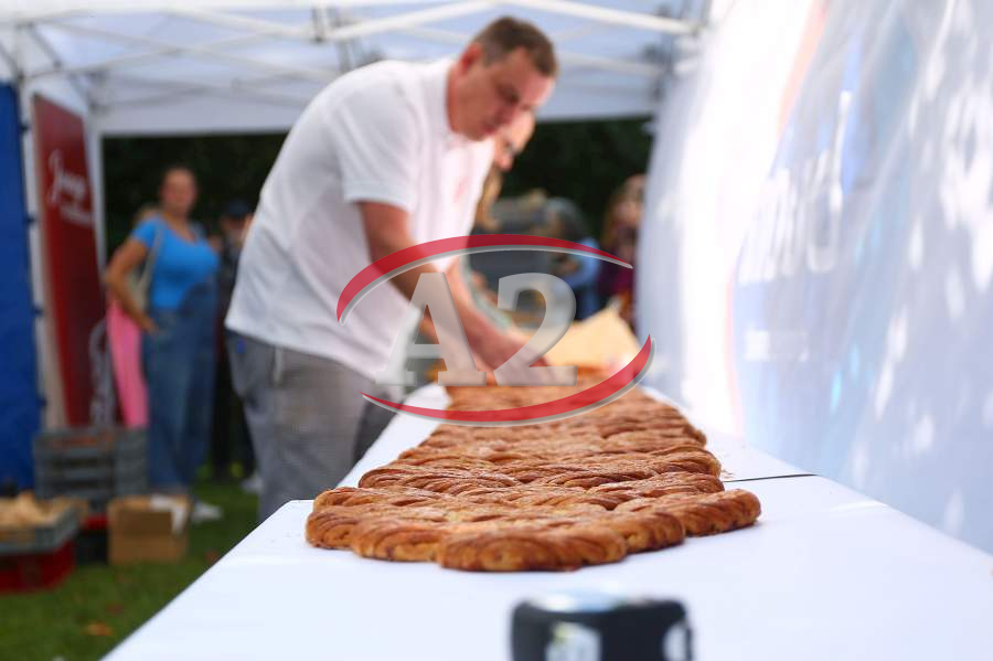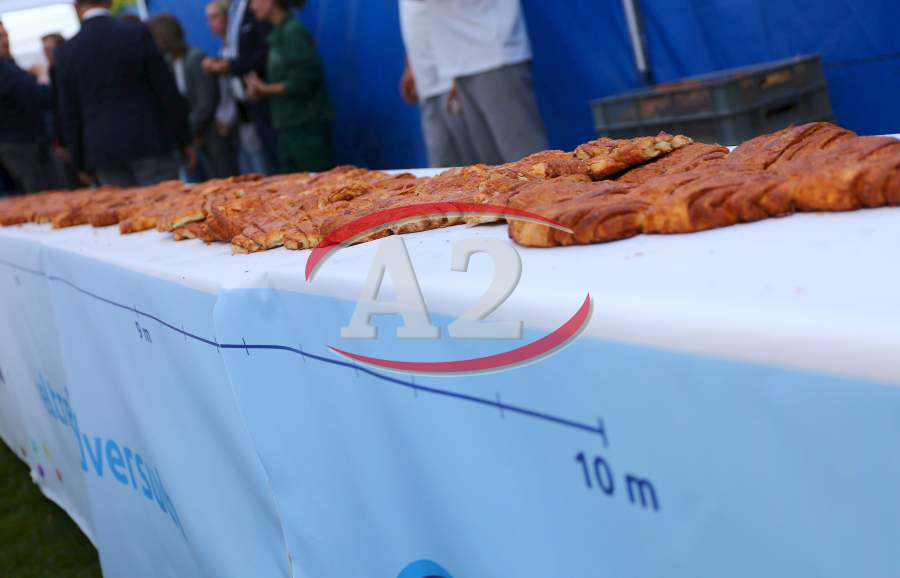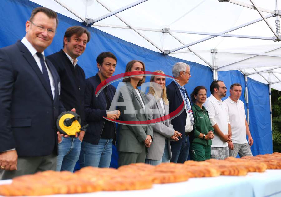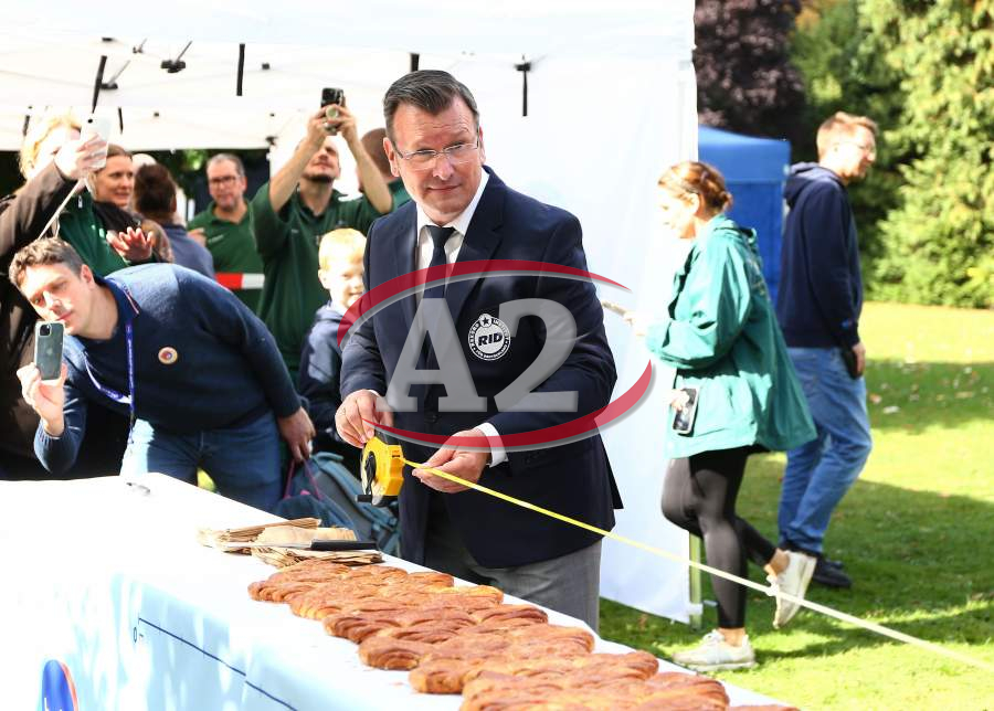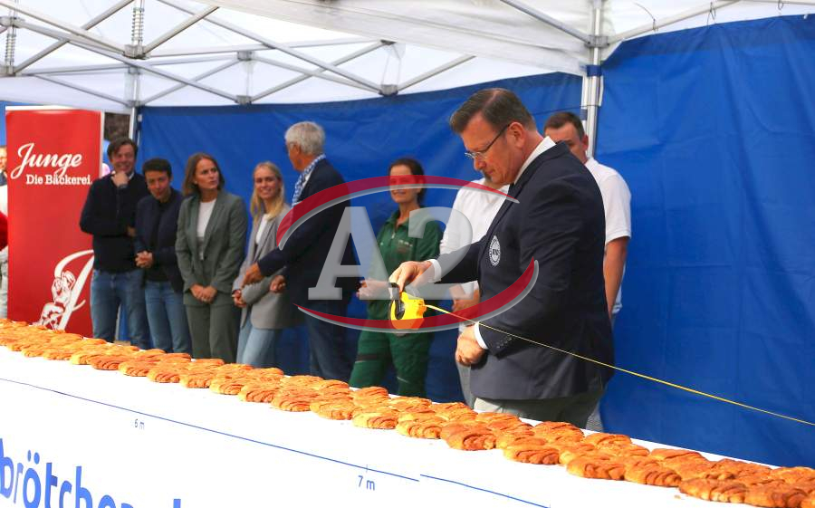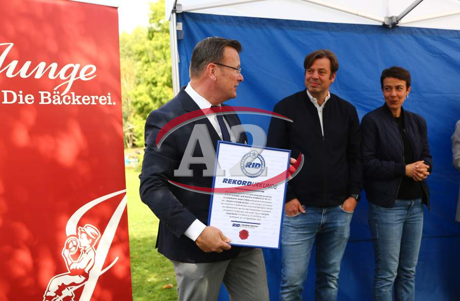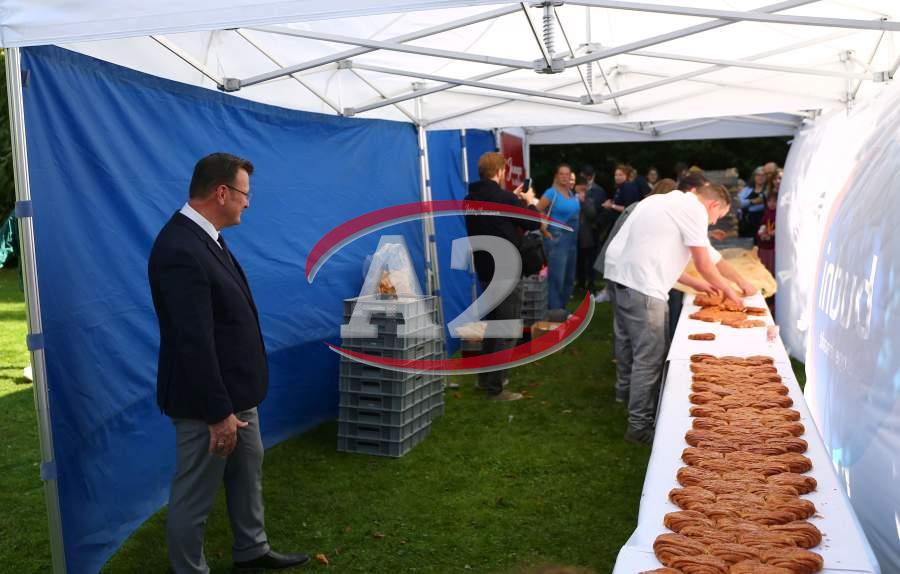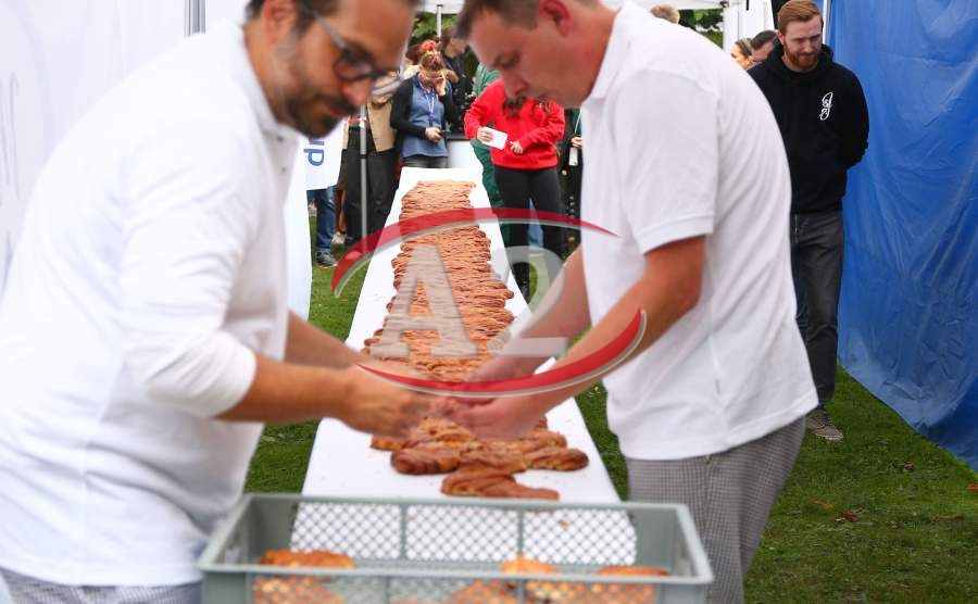 14.09.2025, xcex, GER, Hamburg, Tierpark Hagenbeck, Weltrekordversuch, Weltrekord, das laengste Franzbroetchen aus einzeln zusammengefuegtem Gebaeck, Praesentation und Verspeisen im Tierpark Hagenbeck am Budni-tag, Budnikowsky Drogerie, Konditorei Junge, RID, Rekord Institut fuer Deutschland,