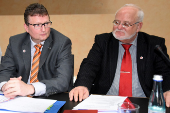 05.03.2015 Dietzenbach, HFV, Kreisfussballausschuss Offenbach der neue und der alte J?rg Wagner und Karl-Heinz Kohls Kreisfussballwart ***** Foto: Peter Hartenfelser