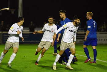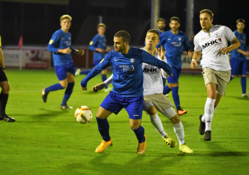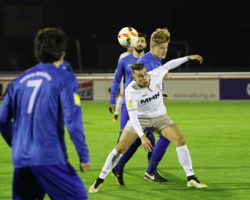 Toni Relic (SC Hessen Dreieich) vor dem Tor von Torh?ter Rene Blessing (SC Viktoria Griesheim)