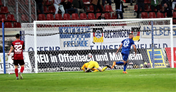 Tor zum 0:1 duch Kevin Dicklhuber (Stuttgart) Torwart Torwart Johannes Brinkies (1, OFC) geschlagen
