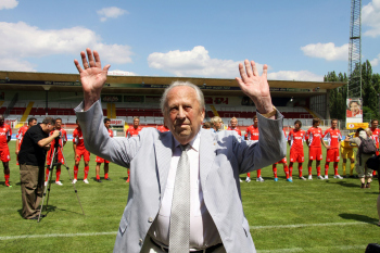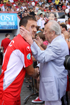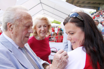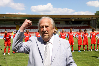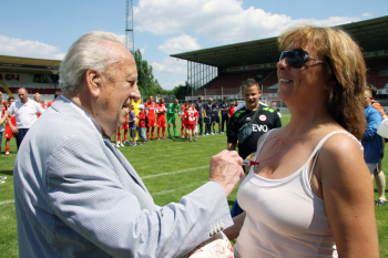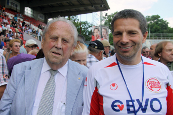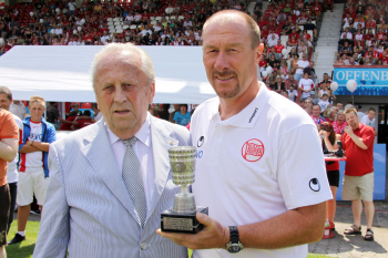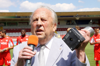 Ehren-Pr?sident Waldemar Klein (Offenbacher Kickers) ist gut gelaunt und gibt Autogramme bevorzugt den Damen