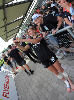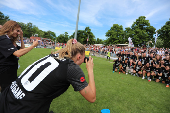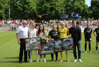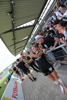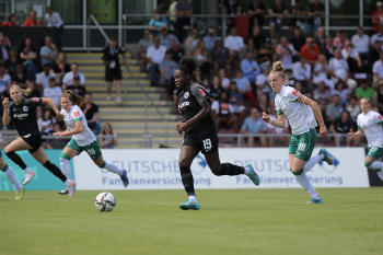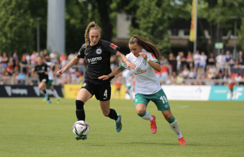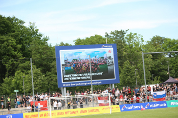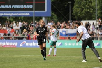 FLYERALARM Frauen-Bundesliga Saison 2021/2022, Spieltag 22, SGE, Eintracht Frankfurt Frauen - SV Werder Bremen, Rasenplatz, Spielfeld, Symbolbild, Zuschauer, Fans