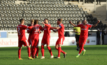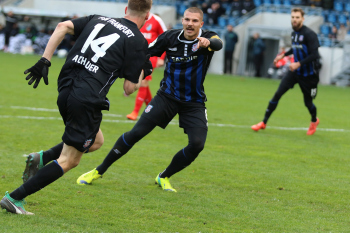 Torjubel durch den Torschützen Alexander Aschauer (14, FSV Frankfurt) und Pollasch, Andreas (8 FSV Frankfurt)