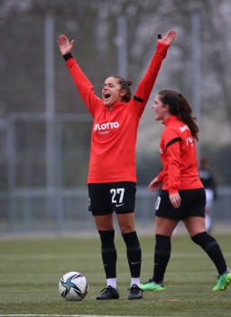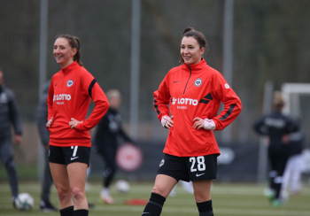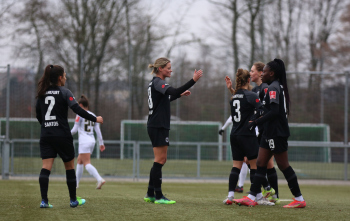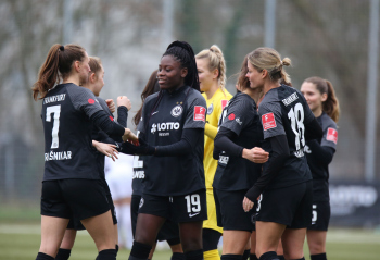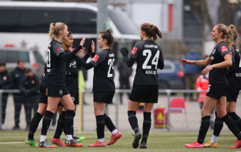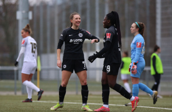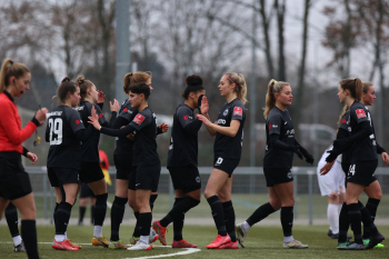 FLYERALARM Frauen-Bundesliga Saison 2021/2022, Vorbereitung, Testspiel, Freundschaftsspiel, Eintracht Frankfurt Frauen (SGE) - SV Elversberg, Torjubel Eintracht Frankfurt Frauen, Jubel, Freude, Emotionen, Goal celebration, Lara Prasnikar, Nicole Anyomi (SGE)