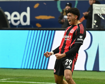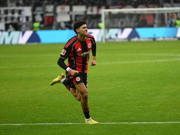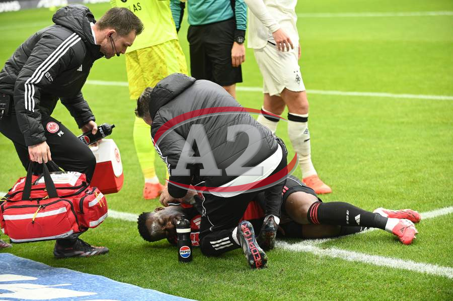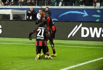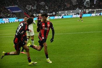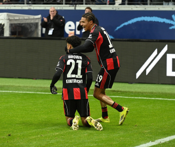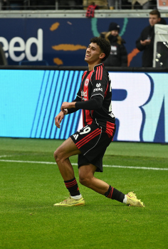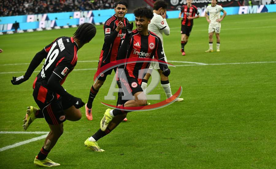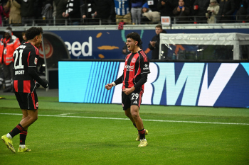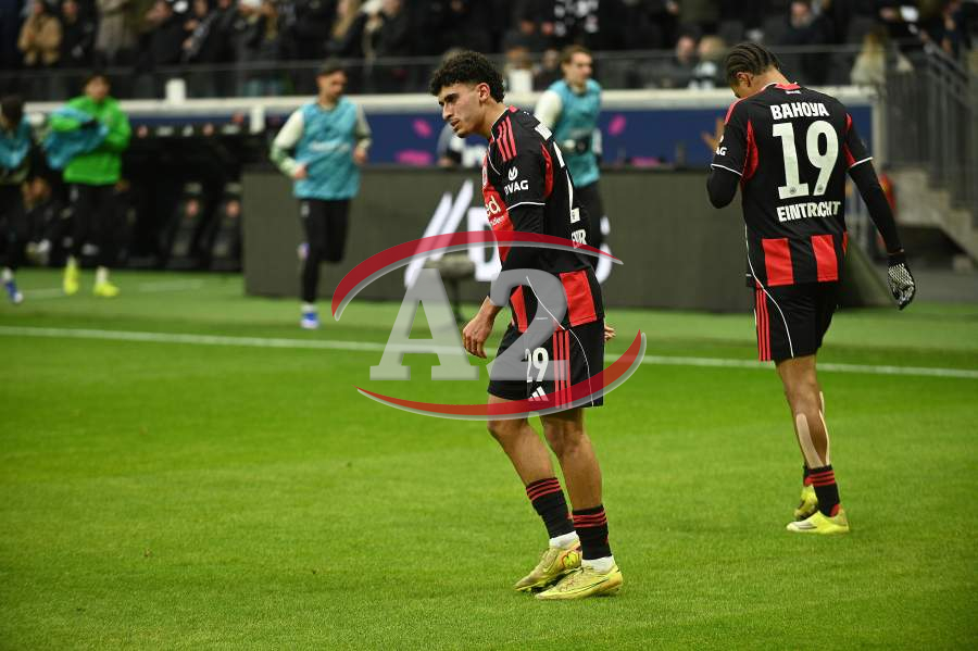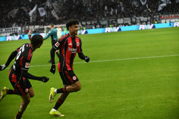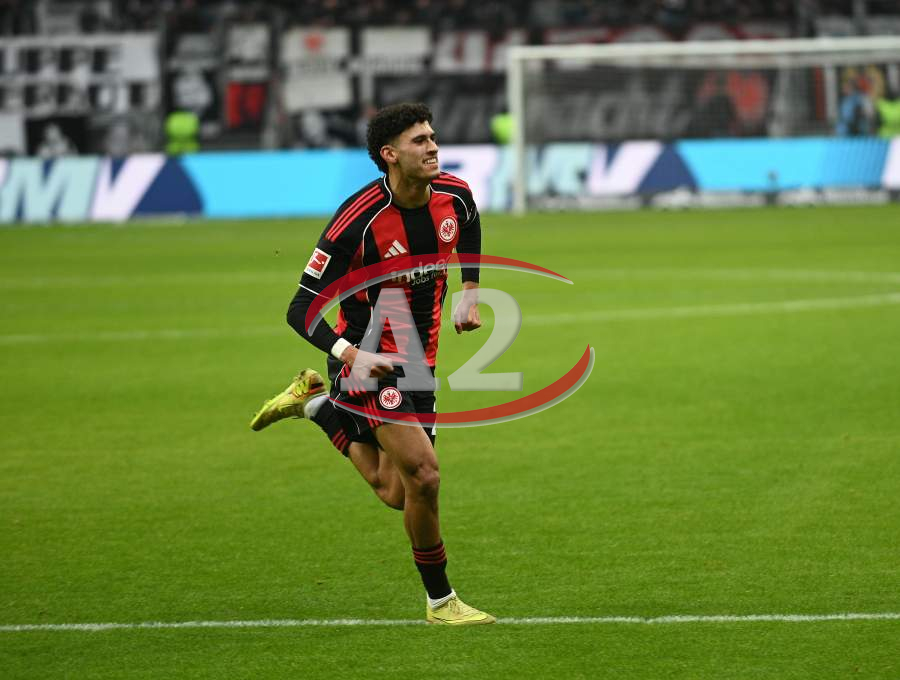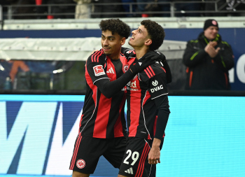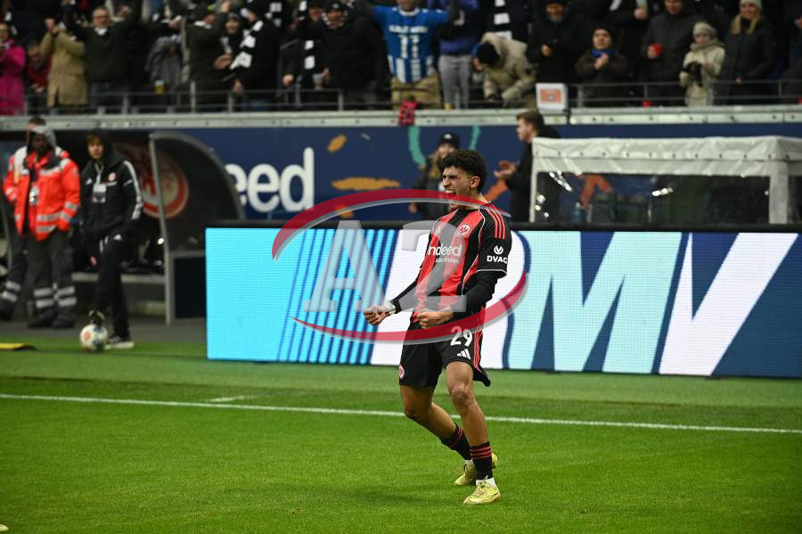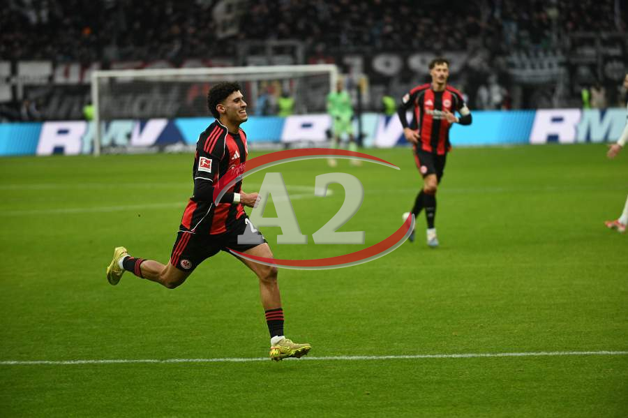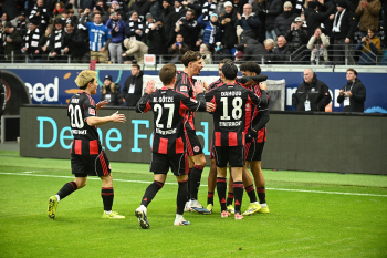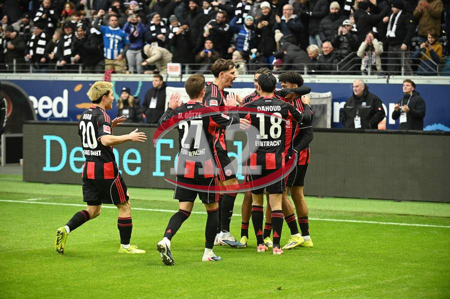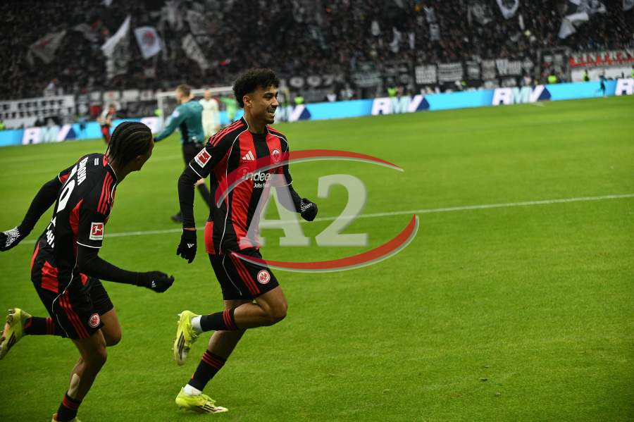 Torjubel nach dem Tor zum 2:0 durch Ayoube Amaimouni-Echghouyab (29, Eintracht Frankfurt) feiert auch nochmal Nathaniel Brown (21, Eintracht Frankfurt)