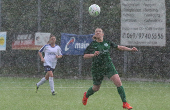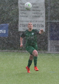 27.04.2019, xmgoodx Bornheim Frauen Hessenliga Saison 2018/2019 SG Bornheim - TSG Neu-Isenburg in der Regenwand Sanne Mertens (TSG Neu-Isenburg ) ****** Foto: Peter Hartenfelser