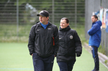 27.04.2019, xmgoodx Bornheim Frauen Hessenliga Saison 2018/2019 SG Bornheim - TSG Neu-Isenburg Trainer Duo Ronny Hartmann-Meinecke und Simone Hartmann (TSG Neu-Isenburg ) ****** Foto: Peter Hartenfelser