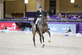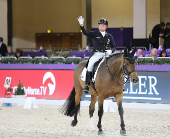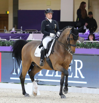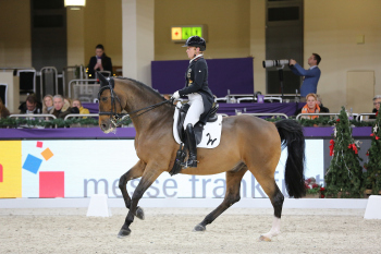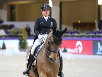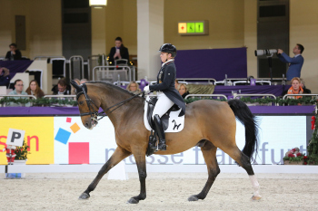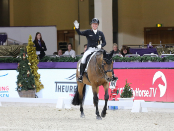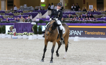 Dressurreiterin Isabell Werth mit Emilio fragt sich was ist hier los - der Monitor war susgefallen
