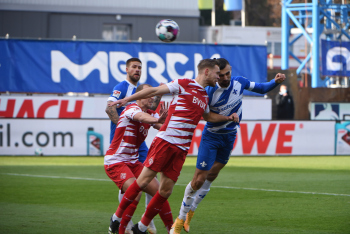 auch durch 3 Würzburger nicht zu stoppen Kempe, Tobias (11) SV Darmstadt 98 , auch Tobias Kraulich (Würzburger Kickers) hält Mehlem, Marvin (6) SV Darmstadt 98 nicht auf