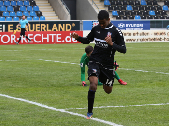 Tor zum 2:0 durch ANDU YOBEL KELATI (14, FSV Frankfurt), Fabian Schmid (Bahlinger SC) kommt zu spät