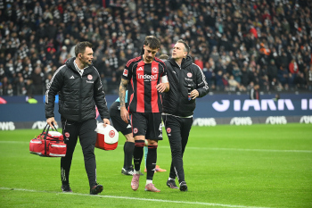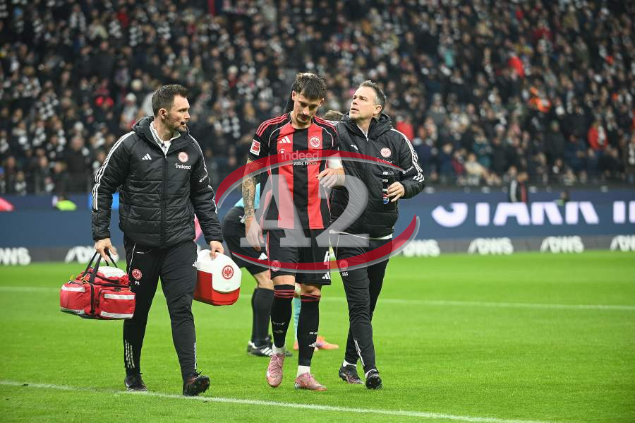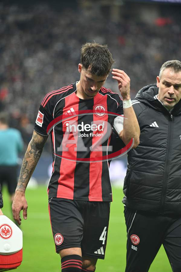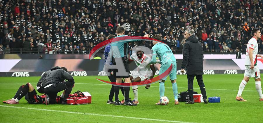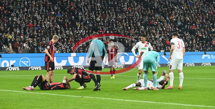 nach Zusammenpral am Boden Robin Koch (4, Eintracht Frankfurt), Rasmus Kristensen (13, Eintracht Frankfurt)