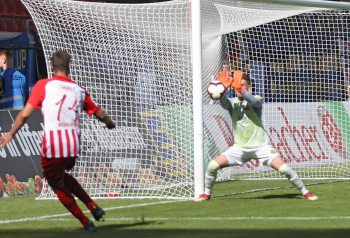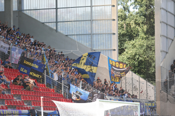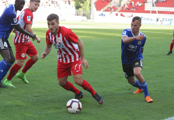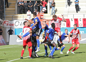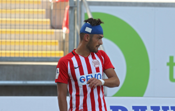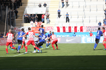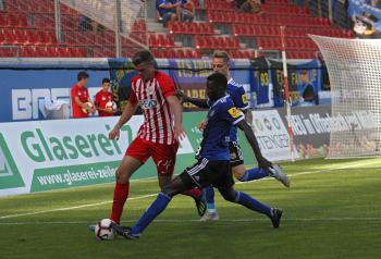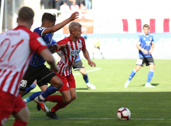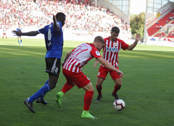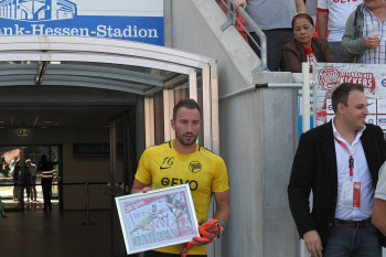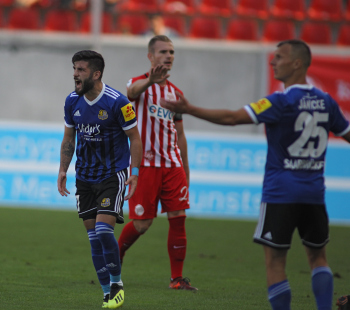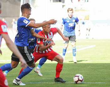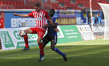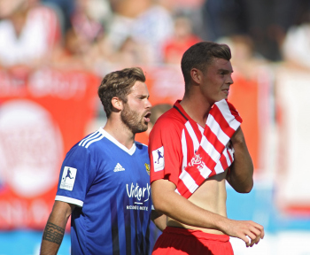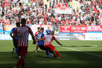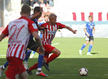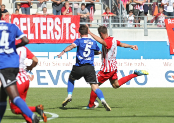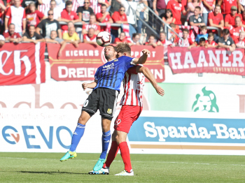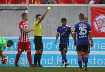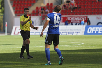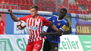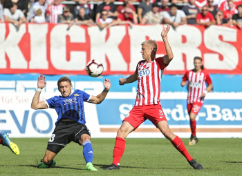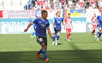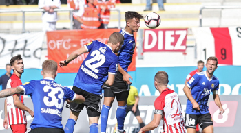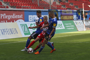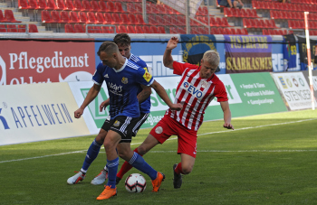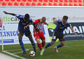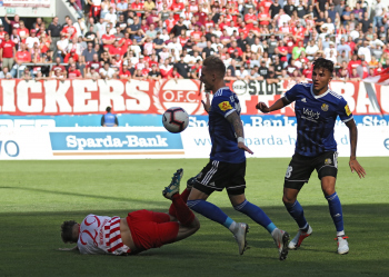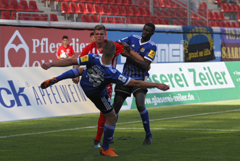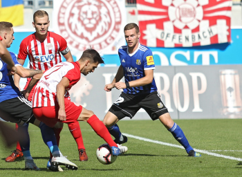 16.09.2018, xxx, Offenbach am Main, Sparda- Bank-Hessen Stadion, Regionalliga Suedwest, Saison 2018/2019, Kickers Offenbach (OFC) - 1. FC Saarbruecken vl.: Alexandre Mendy (1.FC Saarbruecken), , Julian Scheffler (Kickers Offenbach), Serkan Firat (Kickers Offenbach),