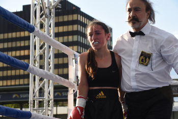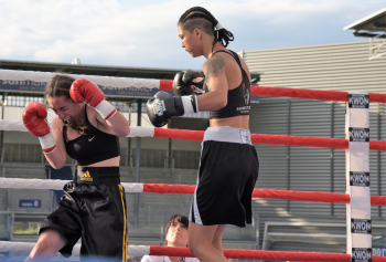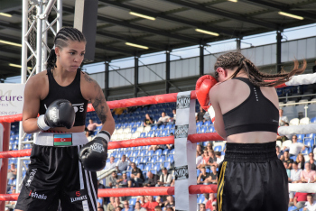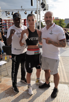 06.07.2019 Wiesbaden BRITA-Arena Wiesbadener Fight Night - Boxen Federgewicht Bilgenur Aras (GER) gegen Nino Gviniashvili (Georgia) ********* Foto: Peter Hartenfelser