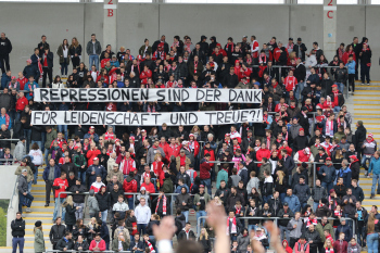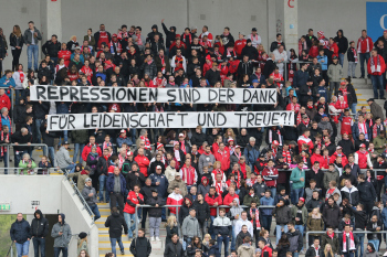 Die Fans des OFC sind sauer und zeigen auf dem Banner Repressionen sind der Dank f?r Leidenschaft und Treue