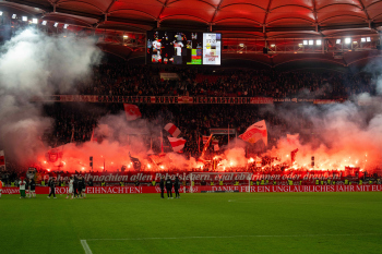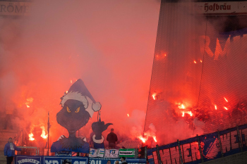 Transparent, Spruchband von den VfB Fans im Stuttgarter Fanblock mit dem Text: Frohe Weihnachten allen Pokalsiegern, egal ob drinnen oder draußen! .