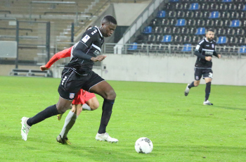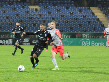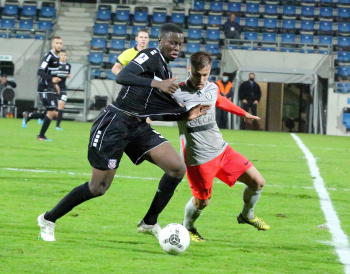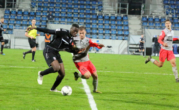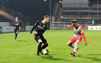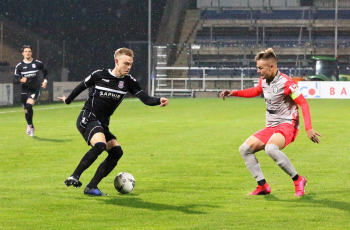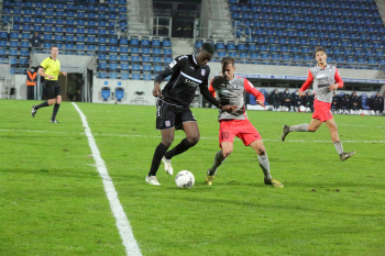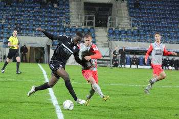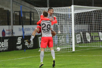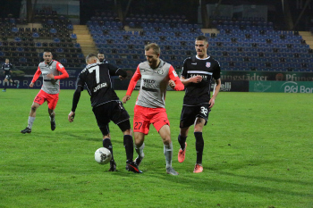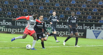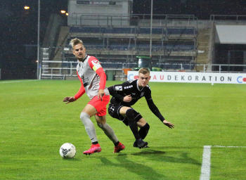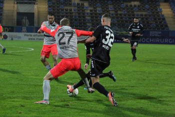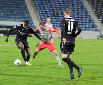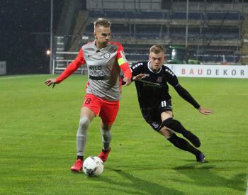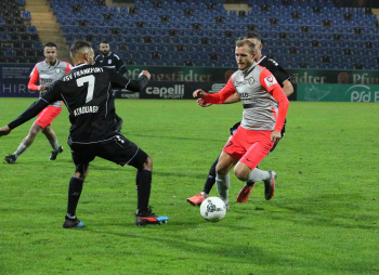 Azaouagh, Ahmed (7, FSV Frankfurt)und hinten Luca Bazzoli (32, FSV Frankfurt) gegen Fabian Baumgärtl ( Elversberg)