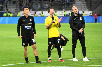 Zufrieden mit dem ERgebnis Makoto Hasebe (20, Eintracht Frankfurt), Mario Götze (27, Eintracht Frankfurt), Sebastian Rode (17, Eintracht Frankfurt)