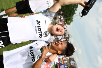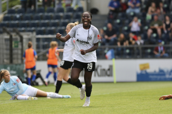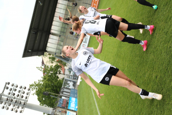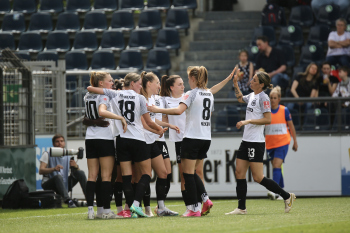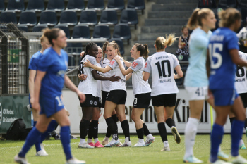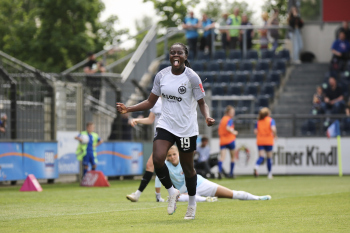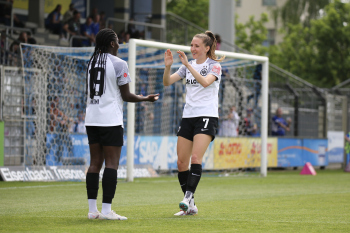 Torjubel bei den Frauen von Eintracht Frankfurt  Nicole Anyomi (19, Eintracht Frankfurt Frauen) und Lara Prasnikar (7, Eintracht Frankfurt Frauen)
