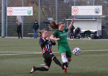 24.11.2019 Frankfurt am Main Frauen Regionalliga Süd Saison 2019/2020 Eintracht Frankfurt - TSG Neu-Isenburg Rania Müller (TSG) gegen Rosalie Sinn (Eintracht) ****** Foto: Peter Hartenfelser