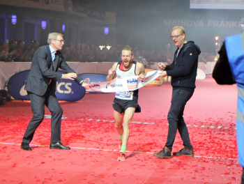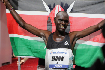 30.10.2016 Frankfurt am Main , Mainova Frankfurt Marathon 2016 Im Ziel Sieger Korir, Mark (KEN) ***** Foto: Peter Hartenfelser
