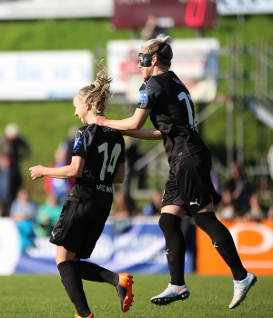 10.05.2017 xcex Deutschland, Duisburg, Fussball, Frauenfussball Allianz Frauen-Bundesliga Saison 2016/2017 FCR Duisburg gegen 1. FFC Frankfurt Torjubel FFC Frankfurt, Jackie Groenen und Sophie Schmidt ***** Foto: A2/Hartenfelser