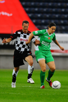 Michael SCHUMACHER, Birgit PRINZ. DEUTSCHLAND, Frankfurt: Fussball, Benefiz-Spiel: biggALLSTARS vs Nazionale Piloti am 18.07.2012, Commerzbank-Arena .