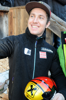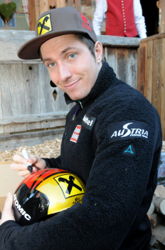 Krone Weltcup Haus, Marcel Hirscher ?sterreichischer Skirennl?ufer. Slalom und Riesenslalom gibt Autogramme auf einem Helm