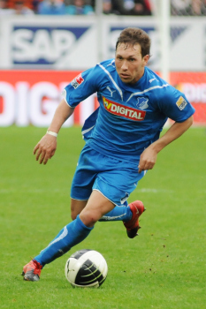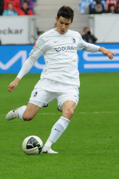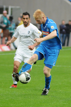 28.03.2010, Bundesliga 28.Spieltag, TSG 1899 Hoffenheim vs. SC Freiburg, #7 Cedrick Makiadi (links), #14 Josip Simunic (rechts)