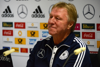 Trainer Horst Hrubesch (GER) bedankt sich bei seinem Kapit?n Kevin Volland (GER) rechts, links Matthias Ginter (GER)