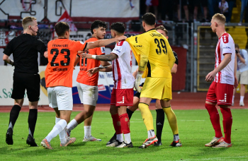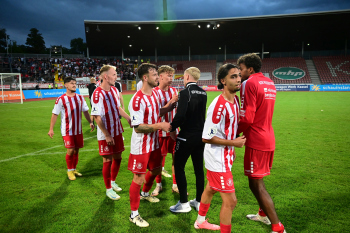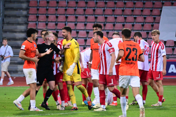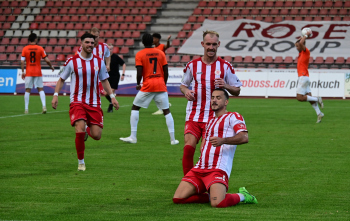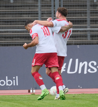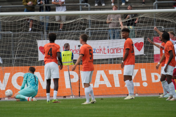 Schiedsrichter Jannick Ziemer, Kaan Inanoglu (11, Eintracht Frankfurt II), Sercan Sararer (10, Hessen Kassel),Torwart Franz Langhoff (39, Hessen Kassel)