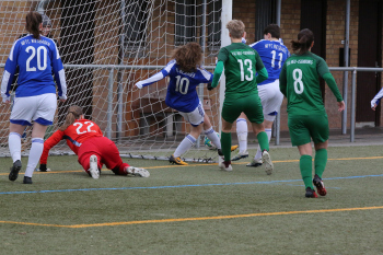 17.03.2019 xmgoodx Offenbach Frauen Hessenliga MFFC Wiesbaden - TSG Neu-Isenburg Ausgleich für die TSG Neu-ISenburg durch Caren Biermann gegen Torwart Svenja Rode (MFFC Wiesbaden) ****** Foto: Peter Hartenfelser