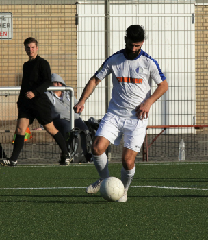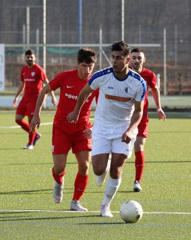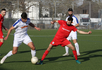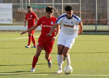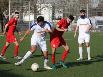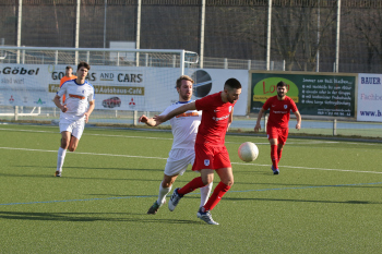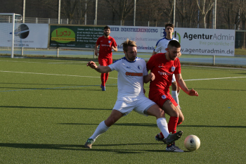 17.02.2019 xmgoodx Offenbach, Rosenhöhe Saison 2018/2019 Testspiel SG Rosenhöhe - Viktoria Urberach Tareq Hamed (Urberach) gegen Veysel Goezcue (Rosenhöhe) ****** Foto: Peter Hartenfelser
