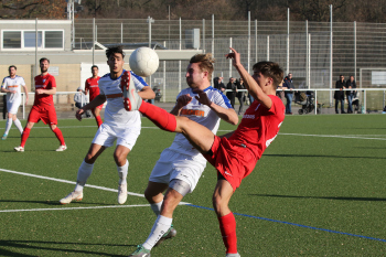 17.02.2019 xmgoodx Offenbach, Rosenhöhe Saison 2018/2019 Testspiel SG Rosenhöhe - Viktoria Urberach Guiseppe Serra (Rosenhöhe) gewinnt das Kopfballduell gegen Till Fakic (Rosenhöhe) ****** Foto: Peter Hartenfelser