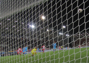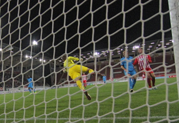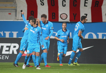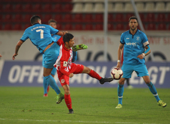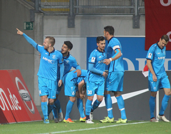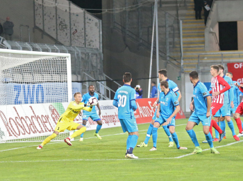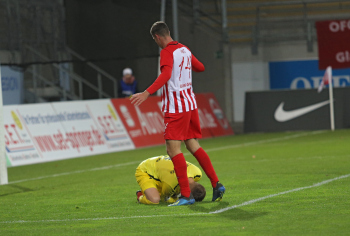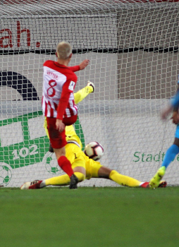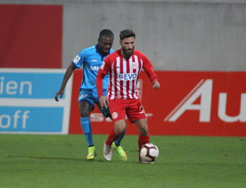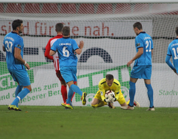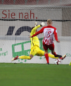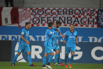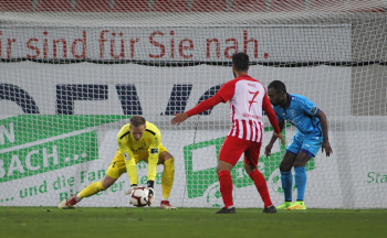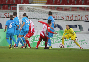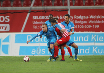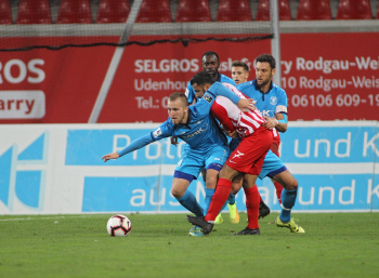 23.10.2018, xxx, Offenbach am Main, Sparda- Bank-Hessen Stadion, Regionalliga Suedwest, Hessenpokal Viertelfinale Kickers Offenbach (OFC) - SC Hessen Dreieich vl.: Schuss von Varol Akgoez (Kickers Offenbach), Denis Talijan (SC Hessen Dreieich), dreht sich weg, Pierre Kleinheider Torwart (SC Hessen Dreieich),