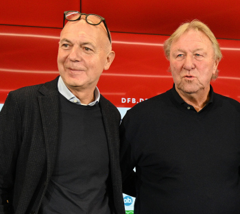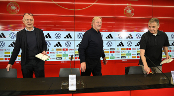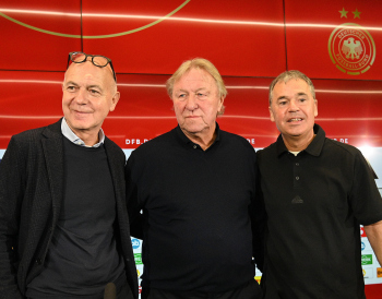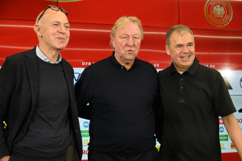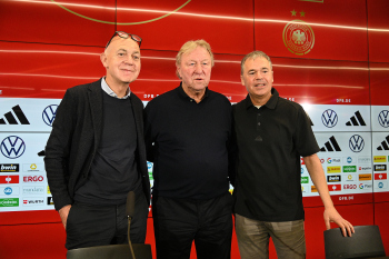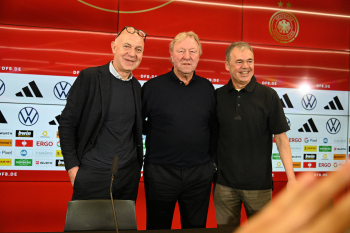 Bild zeigt: Bernd Neuendorf (DFB-Präsident), Horst Hrubesch (Interimsbundestrainer) und Andreas Rettig (DFB-Geschäftsführer