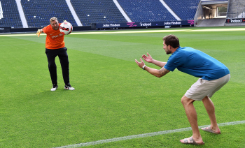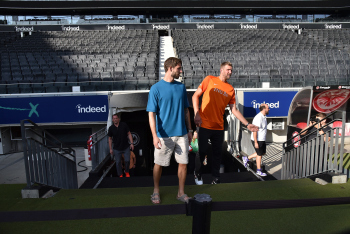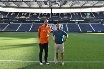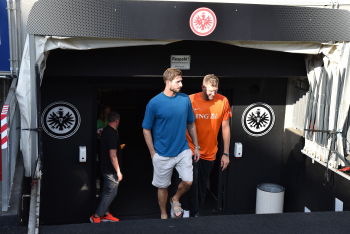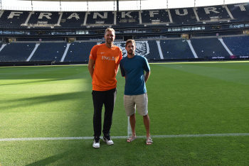 17.08.2022 Frankfurt am Main, Deutsche Bank Park Benefizspiel Champions for Charity PK Dirk Nowitzki und Torwart Kevin Trapp ( 1, Eintracht Frankfurt) im Stadion emspor, ********* Foto: Peter Hartenfelser