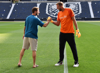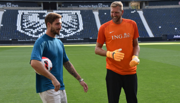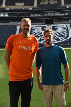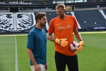 17.08.2022 Frankfurt am Main, Deutsche Bank Park Benefizspiel Champions for Charity PK Torwart Kevin Trapp ( 1, Eintracht Frankfurt) und Dirk Nowitzki emspor, ********* Foto: Peter Hartenfelser