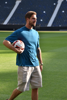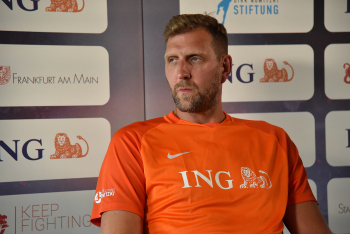 17.08.2022 Frankfurt am Main, Deutsche Bank Park Benefizspiel Champions for Charity PK Rollentausch gibt den Torwart Dirk Nowitzki mit emspor, ********* Foto: Peter Hartenfelser