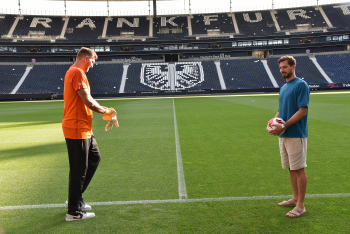 17.08.2022 Frankfurt am Main, Deutsche Bank Park Benefizspiel Champions for Charity PK Rollentausch Torwart Kevin Trapp ( 1, Eintracht Frankfurt) emspor, ********* Foto: Peter Hartenfelser