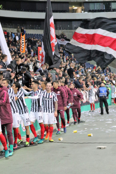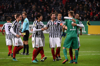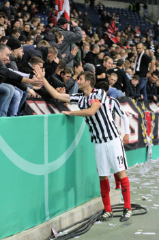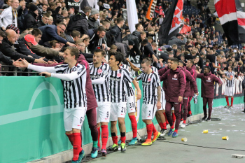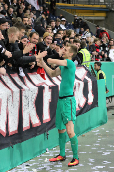 Gl?ckw?nsche und Umarmungen f?r Torwart Lukas Hradecky (Eintracht Frankfurt)