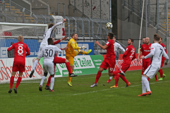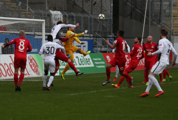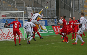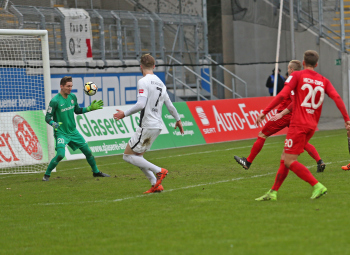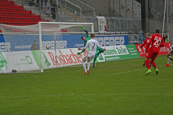 11.02.2018, xxx, Fussball Regionalliga, Kickers Offenbach - SV 07 Elversberg, emspor, v.l. Tor zum 1:0 durch Serkan Firat (Kickers Offenbach), Frank Lehmann Torwart (SV 07 Elversberg), Florian Bichler (SV 07 Elversberg),
