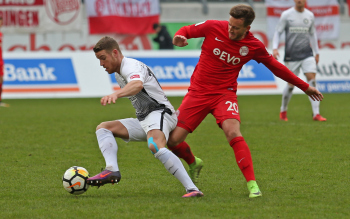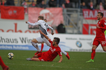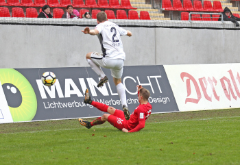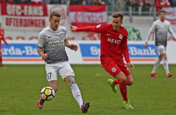 11.02.2018, xxx, Fussball Regionalliga, Kickers Offenbach - SV 07 Elversberg, emspor, v.l. Florian Bichler (SV 07 Elversberg), Niklas Hecht-Zirpel (Kickers Offenbach),