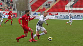 11.02.2018, xxx, Fussball Regionalliga, Kickers Offenbach - SV 07 Elversberg, emspor, v.l.Florian Bichler (SV 07 Elversberg), Dren Hodja (Kickers Offenbach),