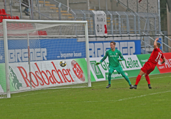 11.02.2018, xxx, Fussball Regionalliga, Kickers Offenbach - SV 07 Elversberg, emspor, v.l. Tor zum 1:0 durch Serkan Firat (Kickers Offenbach), Frank Lehmann Torwart (SV 07 Elversberg),