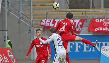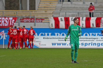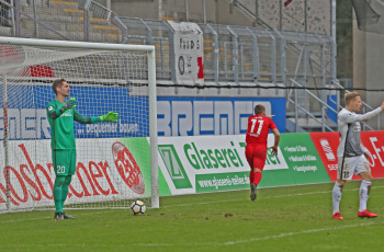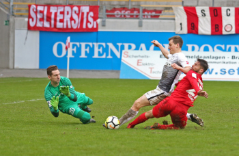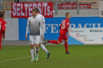 11.02.2018, xxx, Fussball Regionalliga, Kickers Offenbach - SV 07 Elversberg, emspor, v.l. Ko Sawada (Kickers Offenbach), Tor zum 3:0 89. Minute Steffen Bohl (SV 07 Elversberg),
