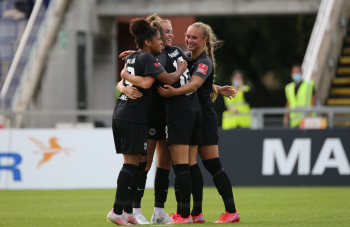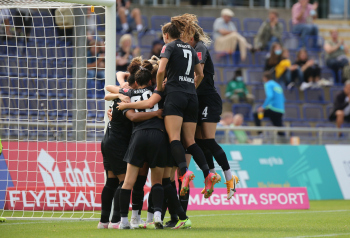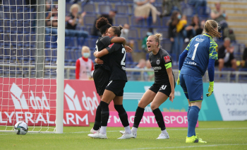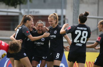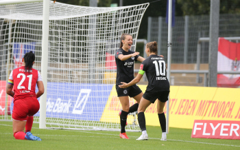 FLYERALARM Frauen-Bundesliga Saison 2021/2022, Spieltag 3, SGE, Eintracht Frankfurt - 1. FC Koeln, Torjubel, Jubel, Freude, Emotionen, Goal celebration,