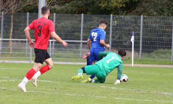 17.10.2021 xmgoodx Heusenstamm, Martinsee Fussball Amateure Saison 2021/2022 TSV Heusenstamm - Ilirida Offenbach Torwart MUHAMER ISMAILI (Ilirida) gegen Emre Kahrmann (Heusenstamm) ***** Foto: A2Bildagentur Hartenfelser