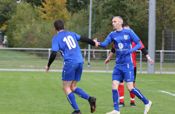 17.10.2021 xmgoodx Heusenstamm, Martinsee Fussball Amateure Saison 2021/2022 TSV Heusenstamm - Ilirida Offenbach Torjubel Dennis hibbeler und Mirnes Mesic (Heusenstamm) ***** Foto: A2Bildagentur Hartenfelser
