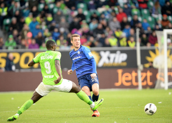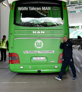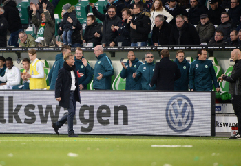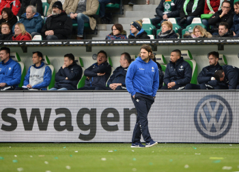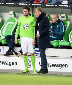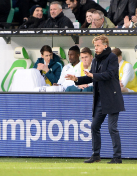 Fussball: 1. Bundesliga, 25. Spieltag, VfL Wolfsburg - SV Darmstadt 98 am 18.03.2017 in der Volkswagen-Arena in Wolfsburg (Niedersachsen). Wolfsburgs Cheftrainer Andries Jonker lautstark an der Seitenlinie, gestikulierend.