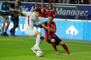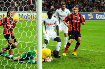 17.09.2010, 1. Bundesliga, Eintracht Frankfurt - SC Freiburg, Kopfball Alexander Meier (Eintracht Frankfurt) vs Cedrick Makiadi , vorne Julian Schuster (SC Freiburg)